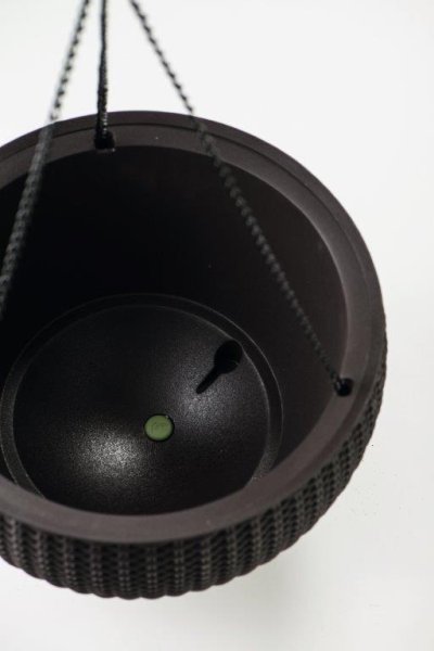 Plastový závěsný obal na květník je vhodný do interiéru i do zahrady. Má nadčasový design - imitaci rattanového výpletu. Díky použití vysoce kvalitních plastových materiálů je odolný vůči vlivům počasí. Barva: hnědá. Průměr: 35 cm, výška: 22 cm.