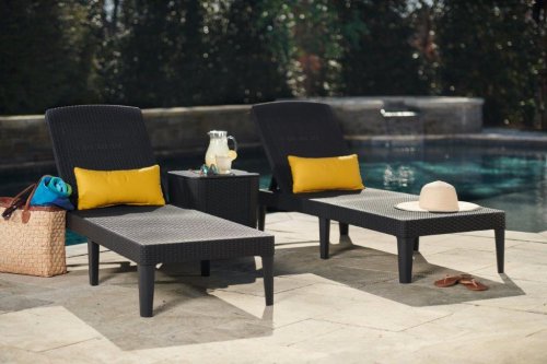 Grafitové plážové a zahradní lehátko Jaipur značky Keter vás nadchne svým jednoduchým a moderním designem. Povrch připomíná svou strukturou přírodní ratan, avšak u tohoto produktu se nemusíte bát větru, deště ani UV záření.