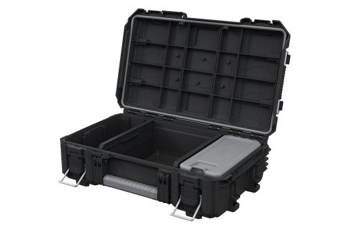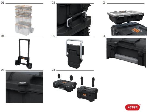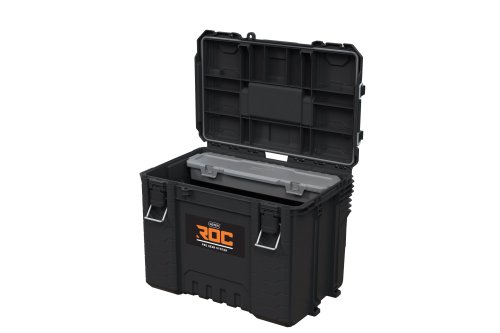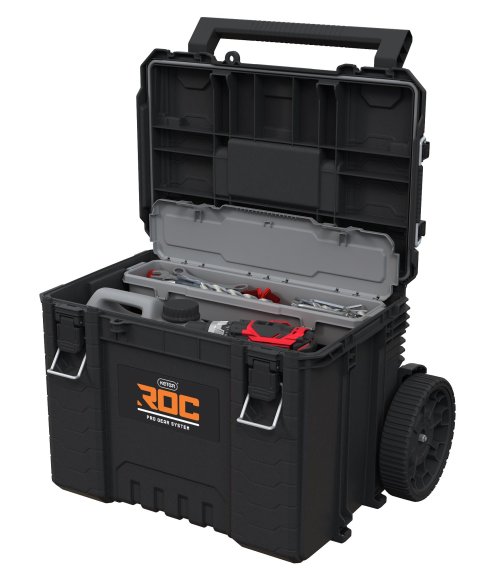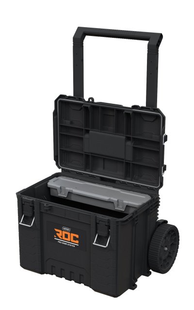 Vnitřní organizéry umožňují mít ve výbavě pořádek. Systém má krytí IP65. ROC Pro Gear je osvědčená inovace postavená na zpětné vazbě od skutečných profesionálů, jako jste vy. Nyní je snazší než kdy jindy naložit svou bednu s nářadím do korby nákladního auta. S novým vozíkem Pro Gear, který má plně odnímatelný rozvor a teleskopickou rukojeť, můžete svůj XL box na náředí zcela oddělit od teleskopické rukojeti s kolečky pro snadnější přepravu. Základní jednotku můžete také během několika sekund vyměnit. Tento vozík, vždy připravený k použití, obsahuje 9" kola a kompatibilitu připojování a odpojování mezi sadami nářadí KETER ROC Pro Gear 2.0 XL.