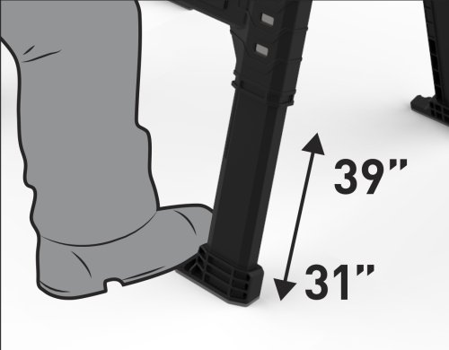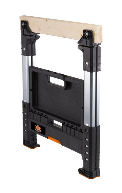 Inovativní Lumberjack™ posouvá koncept pracovních koz do nových výšin. Bude vyhovovat profesionálům a kutilům, kteří potřebují multifunkční produkt, který by splnil jejich neustále se měnící požadavky. Unikátní ráčnový systém otevírání a zavírání nabízí rychlé a snadné nastavení výšky. Integrovaný dřevěný kus má standardní velikost 2'' x 4'' a lze jej použít mnoha způsoby k vytvoření jedinečného a personalizovaného pracovního prostoru tak, aby aby vyhovoval různým projektům. Praktický podvozek má robustní kovové nohy, které lze individuálně nastavit, což umožňuje i práci na nerovném povrchu a zvýšení kozy z 31" na 39". Kompaktní Lumberjack™ s kapacitou 1360 kg na pár dokonale zvládne různé typy prací. Spodní tác na nářadí s nosností 23 kg dodává designu více funkčnosti a větší stabilitu.