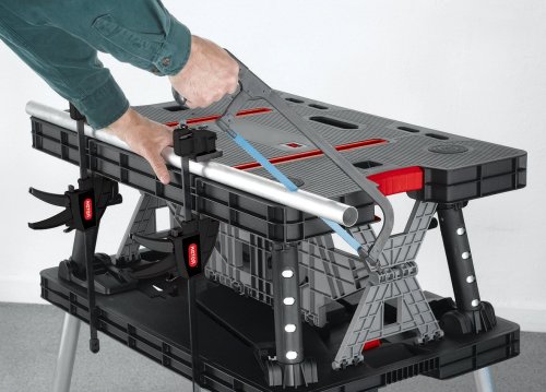 Objevte univerzální pracovní řešení pro každého kutila i profesionála. Přenosný pracovní stůl KETER s integrovanou rukojetí představuje dokonalého pomocníka pro všechny vaše projekty. Tento velice oblíbený skládací stůl kombinuje lehkost a mobilitu s extrémní pevností, díky níž zvládne zatížení až 453 kg.