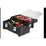Praktická skříňka s velkým objemem. Speciálně navržený vnitřek a dlouhá komora jsou určeny k uskladnění většího nářadí, usnadňují práci a umožňují rozdělení nářadí v závislosti na velikosti. Díky pohodlné a odolné kovové rukojeti lze skříňku bezpečně přenášet. Vysoká kvalita provedení výrobku zaručuje stálost a odolnost, dokonce i v těžkých pracovních podmínkách.
