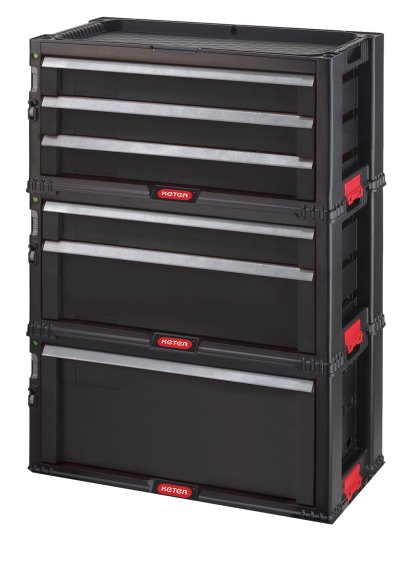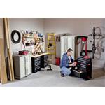 Dodejte své garáži elegantní vzhled bez kompromisů. Zásuvkový systém je ideálním modulárním řešením, které vám umožní přidávat, odebírat a vytvářet mobilní úložný prostor, který nejlépe vyhovuje vašim potřebám při práci. Výrobek disponuje 6 objemnými zásuvkami, což umožňuje praktické seskupování předmětů. Hlubokou zásuvku využijete na uložení většího nářadí.
