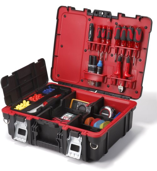 Praktická skříňka s velkým objemem. Její vnitřek usnadňuje skladování nářadí různých velikostí, organizér ve skříňce umožňuje snadnější přístup k nejčastěji používanému nářadí. Výrobek byl navíc vybaven vyjímatelným organizérem s přepážkami. Díky pohodlnému držadlu lze skříňku bez problému přenášet. Produkt byl vyroben z vysoce kvalitních materiálů, což zajišťuje jeho stálost a odolnost.