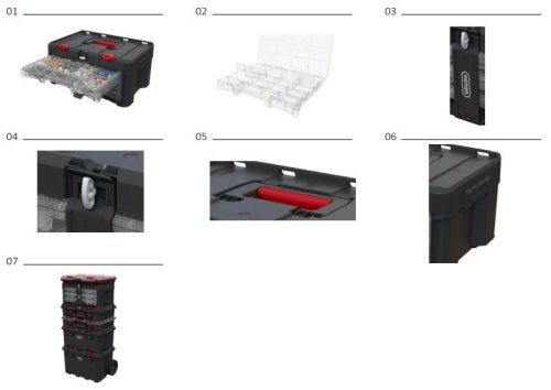 Produkt je vyroben z lehkých, ale vysoce odolných plastů, které udrží obsah chráněn před nástrahami každodenního používání. Kompatibilita s úložným modulárním systémem Stack'N'Roll je samozřejmostí.