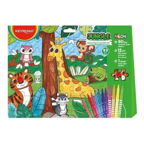 Sestavte si z 88 bílých kartonových dílků o rozměru 38 x 28 cm své vlastní umělecké dílo divoké džungle a vymalujte jako omalovánky dle vlastní fantazie. Puzzle si můžete vymalovat podle vlastní fantazie nebo můžete využít předlohy, která je součástí balení. Sada disponuje 12 popisovači, z nichž 4 jsou barvy neonové. Ideální zábava pro kreativní dětské duše.