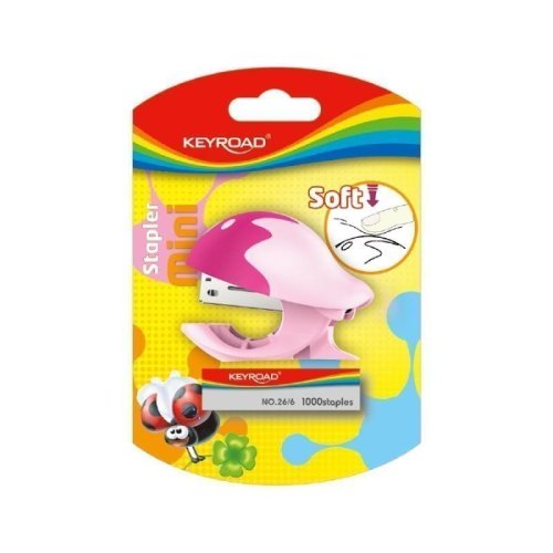 Mini atraktivní sešívačka s kapacitou sešití 10 listů. Sešívačka je vybavená vytahovačem spon a očkem pro zavěšení. Hloubka vkládání 30 mm, spony 26/6, 24/6. Součástí balení sešívací spony 26/6.