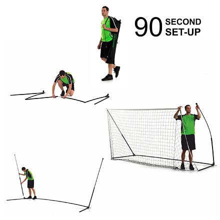 Značka Quickplay představuje řadu fotbalových branek na trénink Kickster. Tato branka na fotbal je díky své konstrukci lehce skládací a pomocí přiloženému vaku ji jednoduše uskladníte a přenesete mezi jednotlivými tréninky. Branka Kickster je vhodná pro individuální trénink doma i pro fotbalové kluby. Je navržená tak, aby byla odolná a přenosná, s patentovaným systémem FLEXI POST využívajícím kombinaci oceli a skelných vláken v rámu spolu s flexibilní látkovou příčkou a systémem sloupků. Branka obsahuje kolíky pro upevnění do země. - materiál: ocel, sklolaminát. PE - rozměry: 150 x 100 x 75 cm - hmotnost balení: cca 5,1 kg - rozměry balení: 79 x 15 x 20 cm - jednoduchá a rychlá montáž