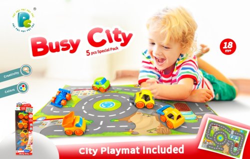 Se sadou Kiddy Go! Autíčkek zažijete mnoho legrace. Balení obsahuje 5 autíček, která mají ideální velikost pro trénování úchop a rozvoj motorických schopností při hraní. V sadě je také podložka města s cestami, po kterých můžou auta jezdit. Vhodné pro děti od 18ti měsíců.