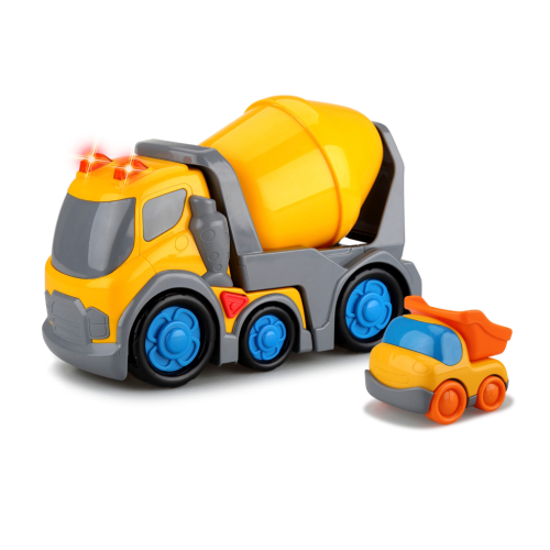 Kiddy Go! Míchačka s efekty. Balení obsahuje auto o velikosti 31 cm a malé autíčko. Míchačka nabízí světelné a zvukové efekty pro větší zábavu. Efekty se aktivují stiskem tlačítka na střeše kabiny. Návěs s míchačkou je možné otáčet. Kolečka na volnoběh. Auto vyžaduje 2xAA baterie, jsou součástí. Vhodné pro děti od 18ti měsíců.