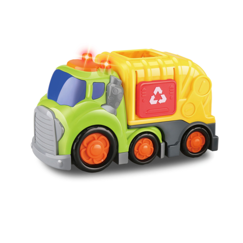 Kiddy Go! Popelářský vůz s efekty. Balení obsahuje auto o velikosti 19,5 cm, popelnici a pytle s odpadky. Auto nabízí světelné a zvukové efekty i otevírací nákladní prosor pro větší zábavu. Efekty se aktivují stiskem tlačítka na střeše kabiny. Kolečka na volnoběh. Auto vyžaduje 2xAA baterie, jsou součástí. Vhodné pro děti od 18ti měsíců.