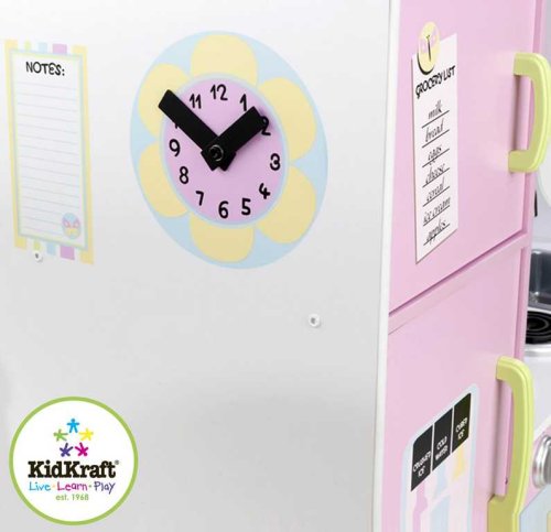 KidKraft Kuchyňka velká pastel Velká kuchyňka na hraní s celou škálou funkčních doplňků, včetně myčky, hodin, telefonu a mikrovlnné trouby. Dostatečná velikost umožňuje více dětem hrát si společně. Chladnička, mrazák, mikrovlnná trouba, trouba a myčka. Otevíratelná dvířka u všech spotřebičů Odnímatelný dřez pro rychlé a snadné čištění Rozměry: šířka 109 cm, hloubka 41 cm, výška 109 cm Vyrobeno z MDF, plast a T-tvarování Balené s podrobným, krok-za-krokem návodem Hmotnost 38 kg Hlavní vlastnosti: Dosti velká na to, aby si s ní mohlo hrát více dětí najednou