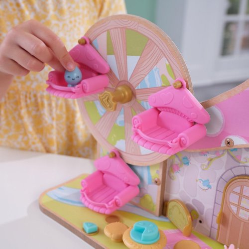 Vstupte do světa lesních víl Lil' Green World z KidKraft. Fantastická pohádková chaloupka je krásné místo, které podnítí představivost a fantazii. Tento dřevěný dům ve tvaru houby s připojeným ruským kolem, oslavující pozemskou zábavu a krásu, zve víly a jejich přátele, aby si celý den hrály a objevovaly. Užijte si točení na ruském kole, které se opravdu otáčí, a pak se vydejte na lov kolem chaty a hledejte přátele a překvapení u každých dveří. Zasaďte nějaké květiny, abyste povzbudili zemi k rozkvětu a připomněli ostatním, že se mají starat o přírodu, aby si ji budoucí průzkumníci užili.