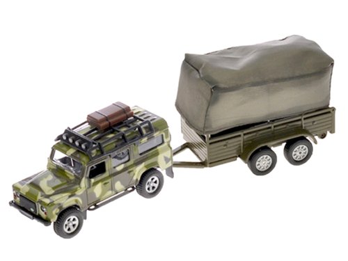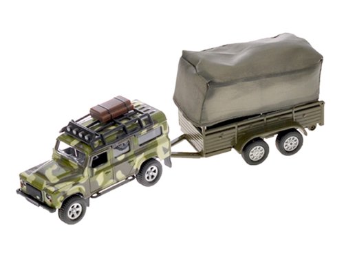 Vojenský set je ideální volbou. V setu se nachází auto Land Rover o velikosti 14,5cm na zpětný chod a vozík, který jde k autu připevnit. Auto má otevíratelné boční i zadní dveře. Tento set si zamiluje každý malý i velký kluk.
