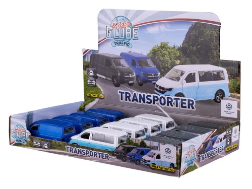 Kids Globe Traffic VW Transporter 13,5 cm kov zpětný chod - mix barev (šedá, modrá, modrobílá)