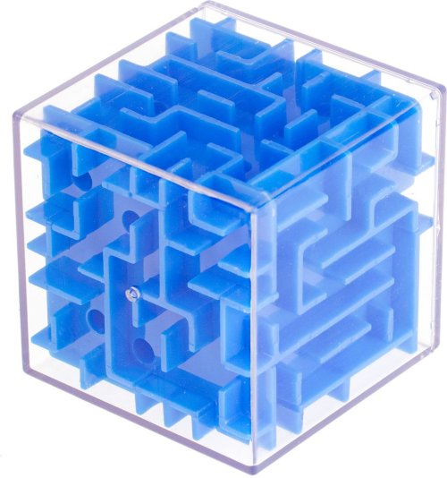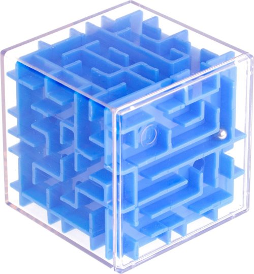 pomocí otáčivých pohybů doveď kuličku do cíle vyhni se dírám v bludišti rozměr labyrintu cca 6 x 6 x 6 cm