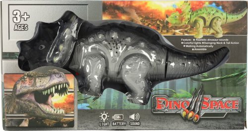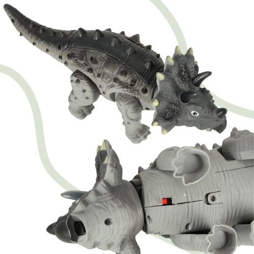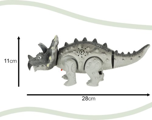 Rozměry: 27 cm x 11 cm x 10 cm Provoz na 3ks AAA 1,5V baterie. Baterie nejsou součástí výrobku. Poznámka: Balení obsahuje 1ks Triceratopse.