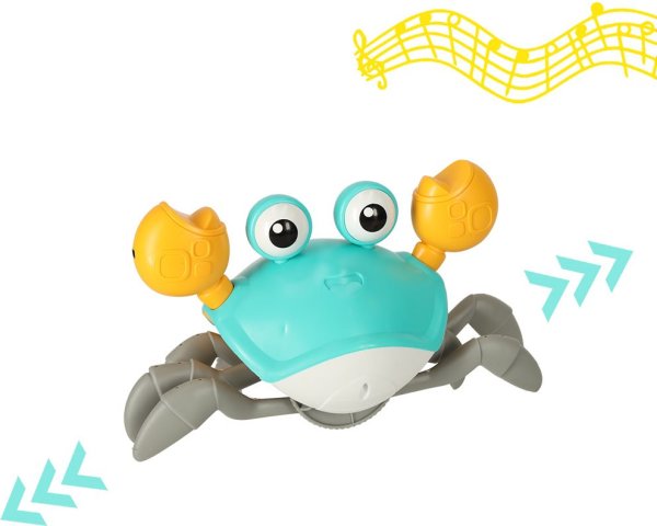 přestože krab rychle chodí, nemusíte se bát o stěny nebo nábytek ve vaší domácnosti = krab je natolik inteligentní, že se jim vyhne tato vlastnost také zaručuje, že nebude přerušovat svou zábavu narážením do gauče, jakmile ucítí překážku, rychle změní směr kromě chození vydává krab také zvuk - při hře tak bude stimulován i sluch dítěte všechny části kraba jsou zaoblené, takže dítě je během hry v naprostém bezpečí je napájen vestavěnou 3,7 V dobíjecí baterií, jakmile se krab vybije, nebo lépe řečeno unaví, stačí ho zapojit do zásuvky a dobít rozměr kraba: 24 cm x 12,5 cm x 10,5 cm USB kabel (délka): 53 cm