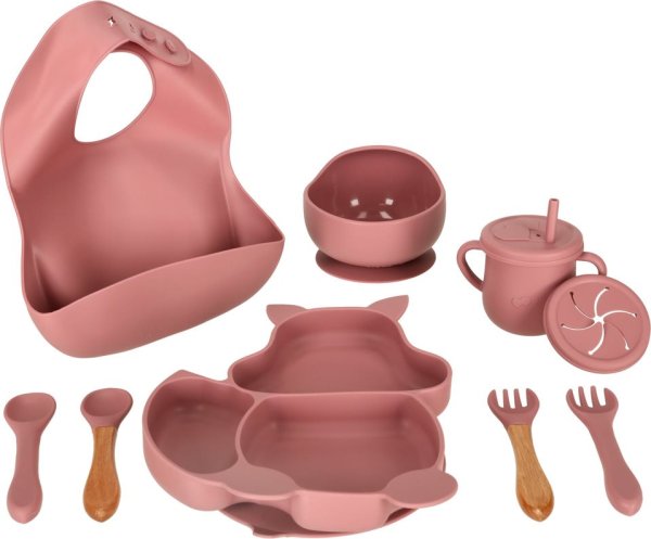Devítidílná sada silikonového nádobí pro děti je ideální způsob, jak se naučit samostatně jíst.