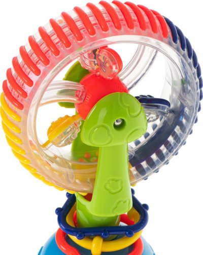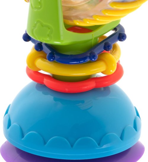 Hračka je vybavena přísavkou, díky které se při hraní nepřevrhne. Barevné kuličky padající dovnitř fungují jako chrastítko. Hračka má pozitivní vliv na rozvoj dětského zraku a hmatu. Při hře se dítě naučí rozlišovat barvy. Pestré barvy povzbudí vaše dítě ke hře.