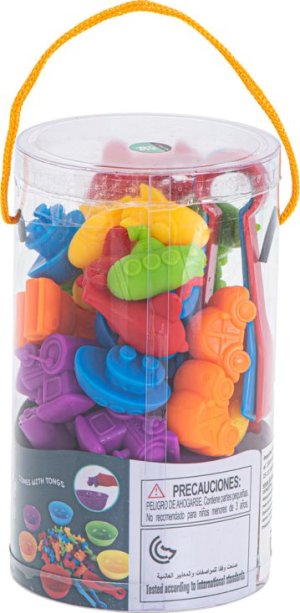 Sada obsahuje: 6 kelímků, 2 kleště, 36 vozidel Rozměry: Kelímek (průměr x výška): 8 x 4 cm Délka kleští: 9,5 cm.
