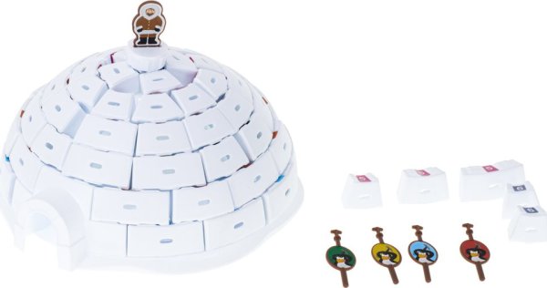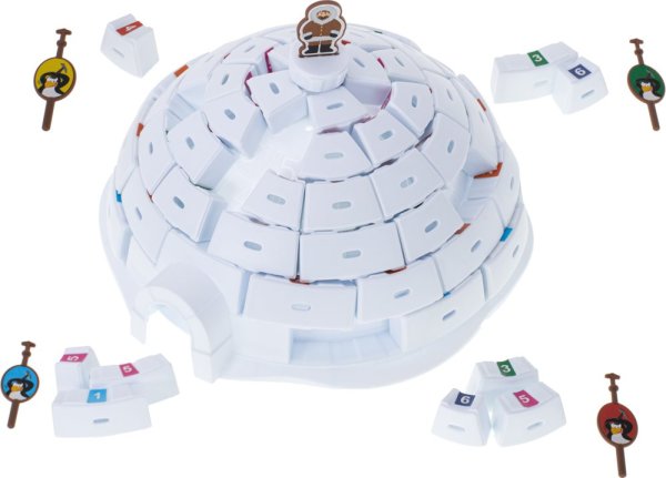 Eskymák konečně dokončil své iglú a postavil se na jeho vrchol, ale co se to děje? Zase ti tučňáci! Snaží se zničit iglú. hra dokonale rozvíjí manuální zručnost a hbitost - nemůžete dovolit, aby se iglú rozpadlo a eskymák spadl navíc hratelnost učí zdravé soutěživosti a principům fair play - ukazuje, že vítězství není nejdůležitější, ale záleží na dobré zábavě balení obsahuje: 64 kostek ledu, 4 tučňáky, 1 eskymáka, 1 kopuli, 1 základnu a sadu samolepek rozměry iglú: 21 x 24 cm velikost tučňáka: 4,5 x 2 cm