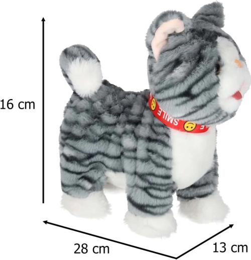 Učí děti zodpovědnosti, péči a empatii — díky realistickým funkcím se mohou cítit jako skutečný „páníček“. Kočka reaguje na dotek — při pohlazení po hlavě mňouká, hýbe ocáskem i jazykem. Chodí a hraje melodie — po stisknutí tlačítka na vodítku kočička chodí vpřed a přitom přehrává veselé anglické písničky. Pro provoz jsou potřeba 3ks baterie typu AA (nejsou součástí balení).