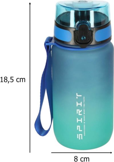 Víčko s přezkou "cvak" - obsah lahve je tak chráněn před náhodným rozlitím Odměrka s infografikou - lahev zobrazuje hodnoty hladiny vody ilustrované kresbami Motivační odměrka - denní rituál pití vody Objem 600ml Mytí v myčce se vzhledem k vysokým teplotám některých programů nedoporučuje
