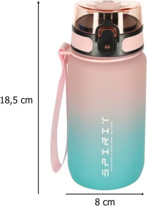 Víčko s přezkou "cvak" - obsah lahve je tak chráněn před náhodným rozlitím Odměrka s infografikou - lahev zobrazuje hodnoty hladiny vody ilustrované kresbami Motivační odměrka - denní rituál pití vody Objem 600ml Mytí v myčce se vzhledem k vysokým teplotám některých programů nedoporučuje