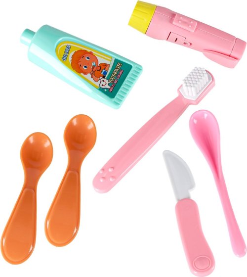 Kompletní lékařská výbava – až 35 prvků včetně nástrojů praktického lékaře, zubaře i zdravotní sestry. Realistický kostým – součástí je zástěra a čepice, které dodávají hře autentický vzhled. Interaktivní hračky – svítící a zvukové efekty (např. stetoskop se zvukem srdce, tlakoměr s pumpičkou). Kreativní hra – umožňuje hrát scénky z ordinace, dávat injekce, obvazovat, měřit tlak nebo zapisovat poznámky. Pomáhá odbourat strach z lékaře – děti se zábavnou formou seznámí s běžnými nástroji a prohlídkami. Pro provoz jsou potřeba celkem 10ks baterií typu AG13 (jsou součástí dodávky).