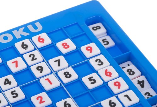 Pravidla hry : Umístěte červená čísla podle jedné z předloh v manuálu. Černá čísla umístěte na prázdná místa tak, aby se žádné číslo neopakovalo ve sloupci, v řádku ani ve čtvercích označených bílou čarou. Sada obsahuje : hrací desku, 81 dílků s čísly Rozměry: hrací deska: 25,5 x 24 x 1,6 cm dílek s číslem: 2,7 x 2,7 cm