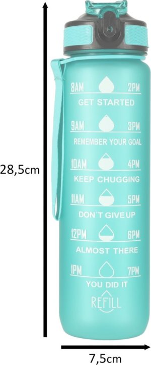 Získejte potřebnou motivaci pro nový den a současně dodržujte pitný režim. Bez ohledu na to, zda máte náročné zaměstnání nebo pravidelně cvičíte, je důležité udržovat správnou hydrataci. K tomu vám může pomoci tato láhev s inspirativními nápisy. Motivační citáty na láhvi vás povzbudí k tomu, abyste vypili celou láhev s vodou nebo jiným nápojem až do poslední kapky. Na láhvi najdete časy, kdy byste měli mít již určitou část vypitou, spolu s pěkným motivačním heslem.