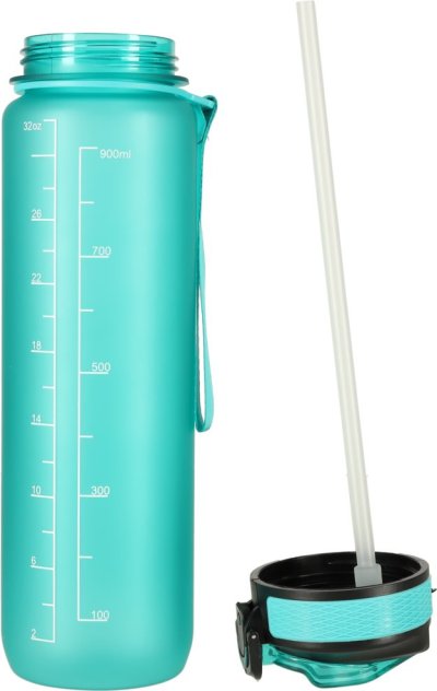 láhev je vyrobena z kvalitního tritanu vhodná pro tekutiny o maximální teplotě 94°C rozměry láhve: 28,5 x 7,5 cm váha prázdné láhve cca 165 g pevné plastové brčko součástí motivační nápisy v angličtině časová osa (anglické znázornění - od 8AM do 7PM) indikace 100 - 900 ml (2 až 32 oz)
