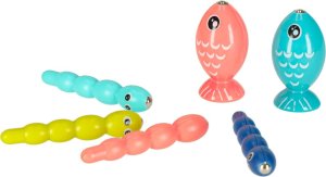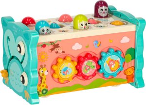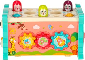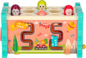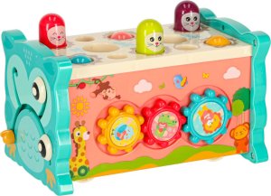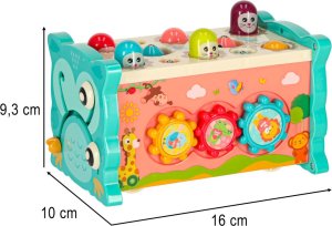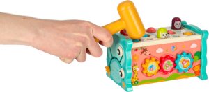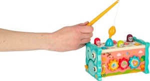 Motorické aktivity stimulují smysly, rozvíjejí kognitivní schopnosti a učí trpělivosti. Sada nabízí rozmanité formy zábavy: zatloukání krtků kladívkem, chytání rybiček pomocí udice, automobilový labyrint, plastové ozubené kolečka k manipulaci. Obsah balení: Hračka – krabička, Rybičky ×2, Červíci ×4, Udice, Kladívko.
