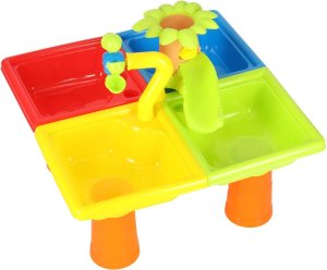 Multifunkční vodní stolek pro děti – všestranná venkovní hračka, která kombinuje funkce pískoviště a vodní dráhy. Poskytuje tak rozmanitou a poutavou smyslovou hru. Stoleček má provedení 2v1: