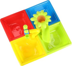 oddělené zóny na vodu a písek vodní skluzavka dovoluje ovládat její směr a experimentovat s tokem vody hraní umožňuje Vašemu dítěti učit se principům fyziky a rozvíjet logické myšlení