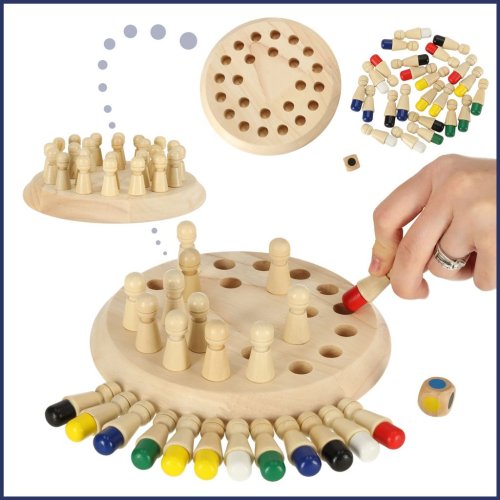 Klasická logická hra v modernizované verzi. Procvičuje paměť a koncentraci. Malé figurky rozvíjí manuální dovednosti a koordinaci ruka-oko. Všechny části jsou ze dřeva a byly vyrobeny tak, aby se dětem při hře nedostaly do rukou třísky. K nátěru byly použity bezpečné, ekologicky nezávadné barvy na vodní bázi. Skvělá volba pro rodiče, kteří hledají pro své děti hračky z přírodních materiálů.