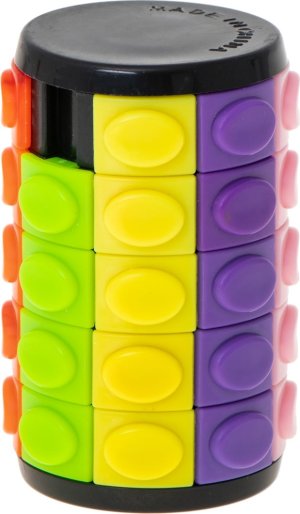Hlavolamová zábava pro všechny chytré hlavičky. Barevný hlavolam, který funguje na principu Babylonské věže. Babylonská věž je hlavolam ve tvaru válce, v jehož vnitřku jsou v pěti horizontálně otočných vrstvách umístěny různě barevné dílky v oddělených přehrádkách. Jedna další přehrádka, která se nachází v první vrstvě, slouží jako "odkládací prostor" a nepřímo tak dovoluje přesouvat jednotlivé dílky v rámci hlavolamu. Cílem je uspořádat dílky podle jejich barevných schémat tak, aby se v každém vertikálním bloku vyskytovaly jen dílky s danou barvou. Rozměry: 6,3 x 3,5 x 3,5 cm.