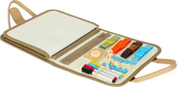 Montessori manipulační tabule v podobě praktické aktovky je ideální způsob, jak může vaše dítě objevovat svět vlastníma rukama. Barevné přezky, knoflíky, suché zipy a tkaničky rozvíjejí logické myšlení, jemnou motoriku a manuální dovednosti. Je to vzdělávací hračka, díky níž je učení vzrušujícím dobrodružstvím!