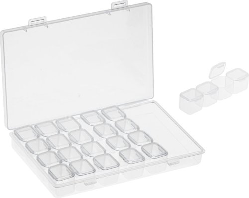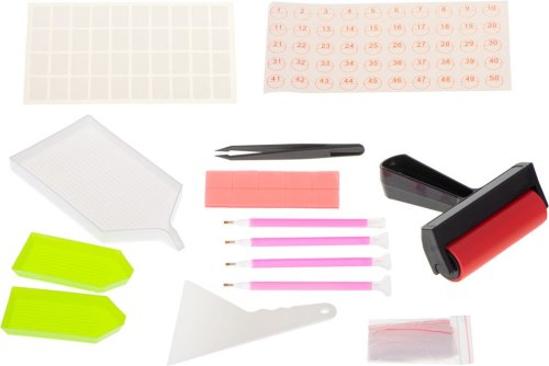 rychlejší uspořádání obrázku - díky různým hrotům pera, které umožňují lepit jeden až několik diamantů najednou lepší organizace práce - až 3 zásobníky, které umožňují rozložit několik barev současně bezpečné uložení kamínků v oddělovači korálků - nemusíte se bát, že by kamínky vypadly z pouzdra nebo se pomíchaly oprava chyb - pinzeta vám pomůže efektivně odstranit kamínek, který se omylem objevil na nesprávném místě lepší trvanlivost obrazu - váleček přitlačuje kamínky k plátnu, což má vliv na jejich lepší přilnutí a zarovnání snadná organizace - samolepky umožňují označit nádoby s kamínky, takže nedojde k záměně barev rychlý úklid - zásobník s nálevkou zefektivňuje přenášení kamínků přímo do separátoru po dokončení obrázku přesné lepení kamínků - stěrka pomáhá udržovat rovnoměrné linie, což je užitečné zejména na okrajích obrázku skladování velkého množství kamínků - sáčky na provázku jsou ideální pro umístění přebytečných diamantů určité barvy společně strávený čas - množství per umožňuje společné tvoření obrázků, a to jak s rodinou, tak s přáteli