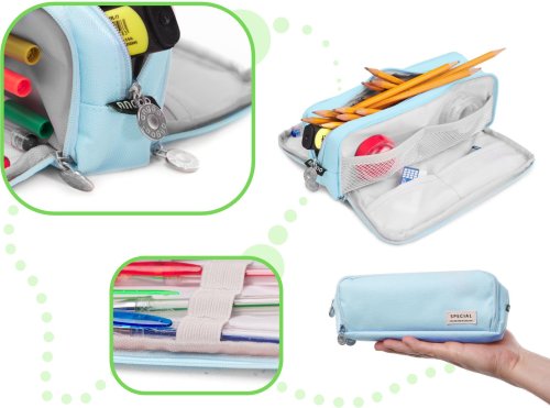 3 přihrádky na zip, menší vnitřní kapsy a gumičky, které usnadňují organizaci příslušenství, lze využít také jako kosmetickou taštičku, peněženku nebo cestovní pouzdro, odolný materiál, rozměry penálu: 22 x 5 x 9 cm.