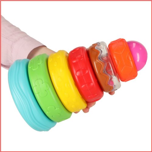 Barevná vzdělávací věž s kruhy v různých barvách a texturách.