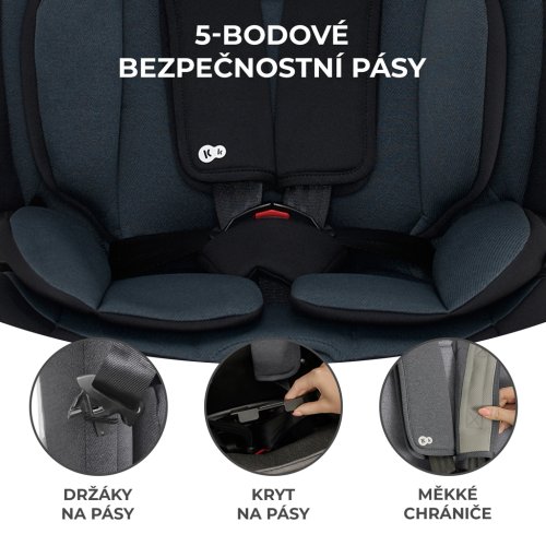 Jednoduchá montáž na ISOFIX Díky ISOFIX sedačku do auta namontujte za pár okamžiků. Při přepravě mladších dětí je třeba ji dodatečně připevnit pomocí popruhu TOP TETHER. Oba systémy mají indikátory, které zaručují správnou montáž. Větší děti můžete volitelně přepravovat v autě bez ISOFIX konektorů.