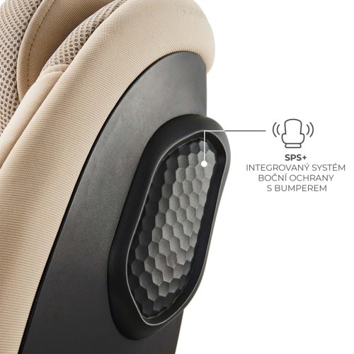 Systém boční ochrany SPS+ Systém SPS+ s přídavnými bočními prvky efektivně absorbuje a rozptyluje počáteční a nejsilnější sílu nárazu, čímž vytváří ochrannou bariéru kolem dítěte. Zaručuje bezpečnost klíčových částí těla, jako je hlava a trup.