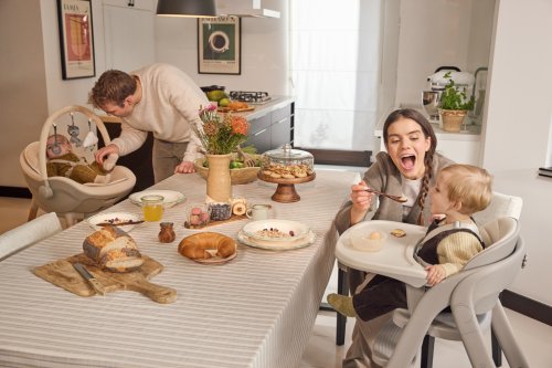 FINI UP přirozeně kopíruje rytmus domova: od prvních zdřímnutí v pololehu, přes období zavádění příkrmů, až po každodenní sezení u stolu, když chce dítě být nablízku dění v kuchyni a jídelně. Rodiče oceňují, že místo výměny nábytku každých pár měsíců stačí rychlá změna nastavení - bez použití nářadí - a židlička je připravená na další etapu.
