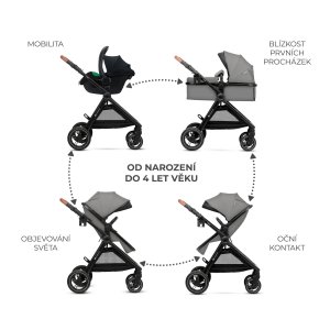 KINDERKRAFT Kočárek kombinovaný 3v1 Esme Pro Moonlight Grey