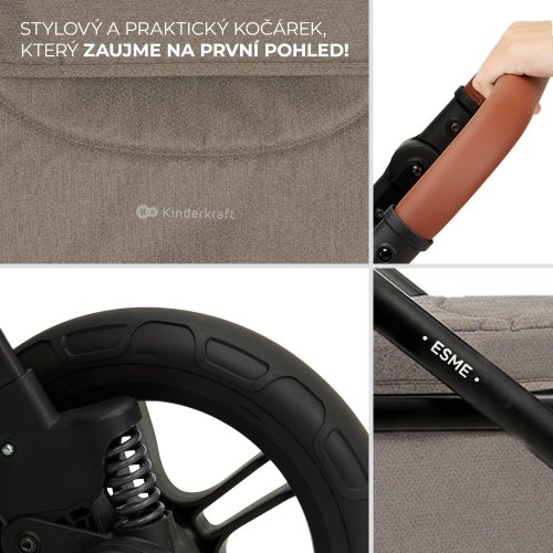 Vneste styl do svých každodenních procházek! ESME je multifunkční dětský kočárek 3 v 1, který vás okouzlí svou funkčností a elegancí. Zaujmete pozornost krásným, moderním designem – decentní barevné provedení a pečlivě zpracovaný rám zajistí, že si každodenní procházky s dítětem zamilujete ještě víc. Kočárek oceníte také díky velké vaničce s ventilačním panelem, kterou ve třech jednoduchých krocích přeměníte na sportovní sedadlo. Toto řešení 2 v 1 vám ušetří místo při skladování jednotlivých částí. Za zmínku stojí i další praktická řešení, jako je skládání do kompaktních rozměrů spolu se sedadlem nebo cestovní systém – TRAVEL SYSTEM (autosedačka MINK PRO 2 i-Size a adaptéry jsou součástí balení). Kočárek 3 v 1 ESME má i velká odpružená kola z nepropíchnutelné TPE gumy – jsou lehká, otočná a vhodná do každého terénu. ESME vás spolehlivě provází na každodenních procházkách i na delších dovolených. V balení naleznete kompletní sadu potřebného příslušenství – bez dalších nákladů! Užívejte si pohodlné procházky díky prostorné tašce, pláštěnce, nánožníku a držáku na sklenici.