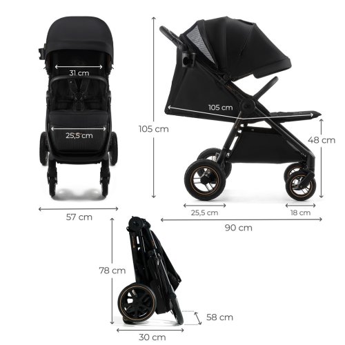 Lze okamžitě složit jednou rukou do kompaktní velikosti, takže je ideální pro cestování. Skládání směrem dovnitř chrání látku sedačky před znečištěním a relativně lehká konstrukce umožňuje kočárek snadno přenášet i s dítětem v náručí.