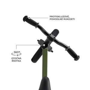 Vždy první v cíli. ETER je ultralehké balanční odrážedlo (3 kg) se sportovním designem, ideální pro malé milovníky rychlosti. Monolitický rám z nylonu je extrémně lehký, odolný vůči vlhkosti, korozi i mechanickému poškození. Nastavitelné sedátko a 12palcová bezúdržbová PU kola zajišťují pohodlnou a stabilní jízdu. Protiskluzové rukojeti, ergonomická řídítka a bezpečná konstrukce poskytují maximální ochranu. Rám slouží také jako praktická rukojeť pro přenášení – nebo jako místo k odpočinku během hry.