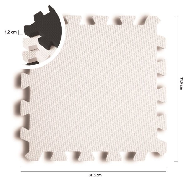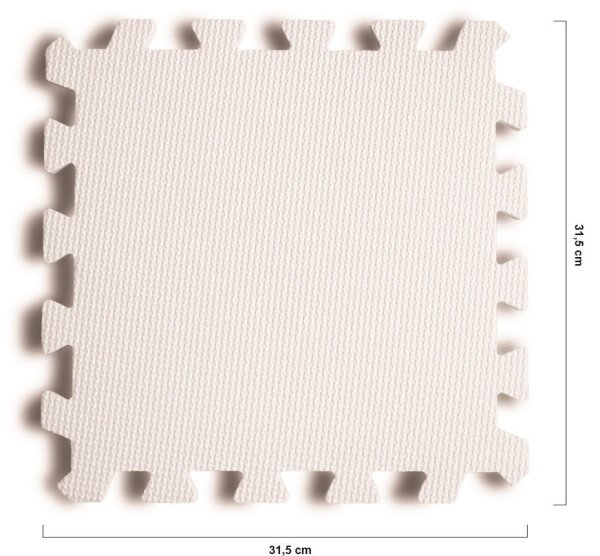 Praktická a pohodlná pěnová podložka z 30 puzzlí, které lze spojovat libovolným způsobem. Je určena k zábavě pro vaše dítě. Může na ní ležet nebo na ní dělat první kroky. Neutrální, kontrastní barvy puzzlí jsou dokonalým dekorativním prvkem místnosti. Jsou vyrobeny z pěny, jsou bezpečné a neobsahují škodlivé substance což je potvrzeno testy z nezávislé laboratoře INTERTEK. Navíc se snadno udržují čisté. V sestavě je též taška k přechovávání puzzlí.